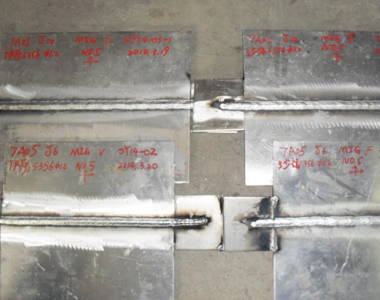 鋁合金是高速船的主要結(jié)構(gòu)材料,鋁合金可以設(shè)計出更合理的結(jié)構(gòu)形式,減輕重量,提高結(jié)構(gòu)強度。我公司自主研發(fā)的輕型自行門橋等產(chǎn)品均采用了7系高強度鋁合金,因此造船工藝迎來了重大的轉(zhuǎn)換期,選用合適的焊接方法和焊接工藝,有效控制鋁合金焊接變形及焊接接頭強度,公司工法科還為此研制了焊接氬氣保護裝置和焊接環(huán)境風(fēng)向控制箱等科技含量很高的工裝。我們在接頭設(shè)計、焊接工藝參數(shù)等方面進行了大量的焊接試驗。經(jīng)過一代一代的努力,積累豐富的數(shù)據(jù)和經(jīng)驗,外觀成型和理化試驗后機械性均符合標(biāo)準(zhǔn),已編制出準(zhǔn)確的7系高強度鋁合金PWPS,形成正式的焊接試驗報告(WPQR),并制定出具體的現(xiàn)場焊接工藝,將形成工藝標(biāo)準(zhǔn)。