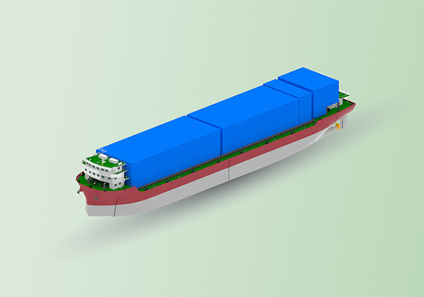 該船型設(shè)計(jì)獨(dú)具匠心,總長(zhǎng) 119.98m,型寬 21.80m,型深 8.50m。在裝載能力方面表現(xiàn)出色,散貨裝載量可達(dá)15,000噸,標(biāo)準(zhǔn)集裝箱裝載量高達(dá)735TEU,總噸位 9500載重噸。